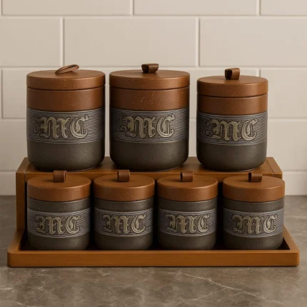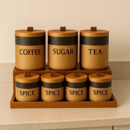 סטנד מבראס שחור שתי קומות עם ארבע צנצנות זכוכית ומכסה בראס (2 בקרטון) 42*26*55ון