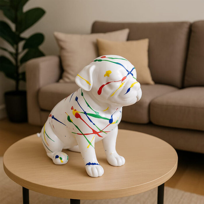 כלב בולדוג גזעי צבע לבן עם שפריץ צבעוני 18.5*12.5*19 ובין ס"מ