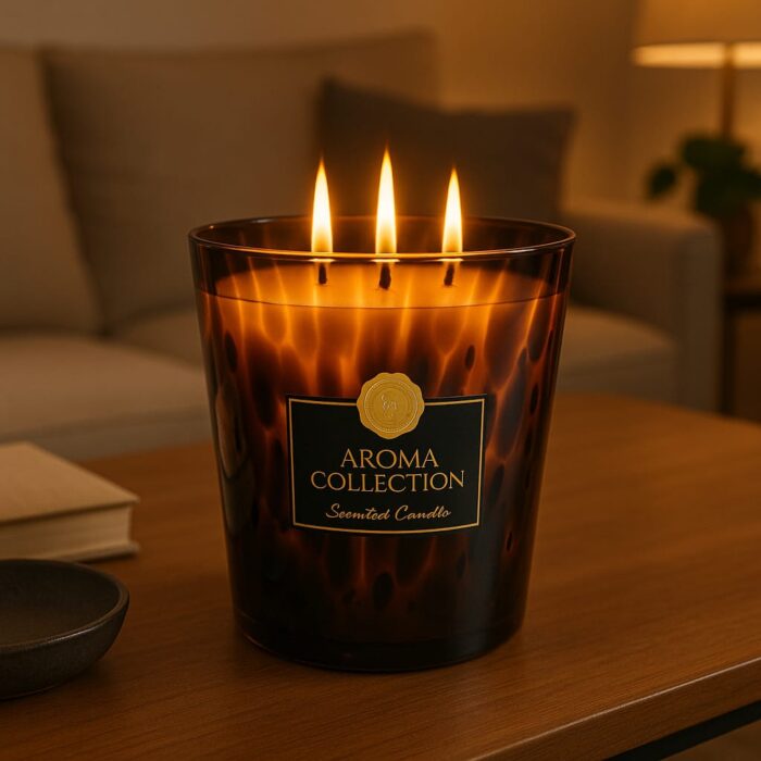 כמות של נר דקורטיבי עגול עם זכוכית חום מנומר 13*16 ס"מ