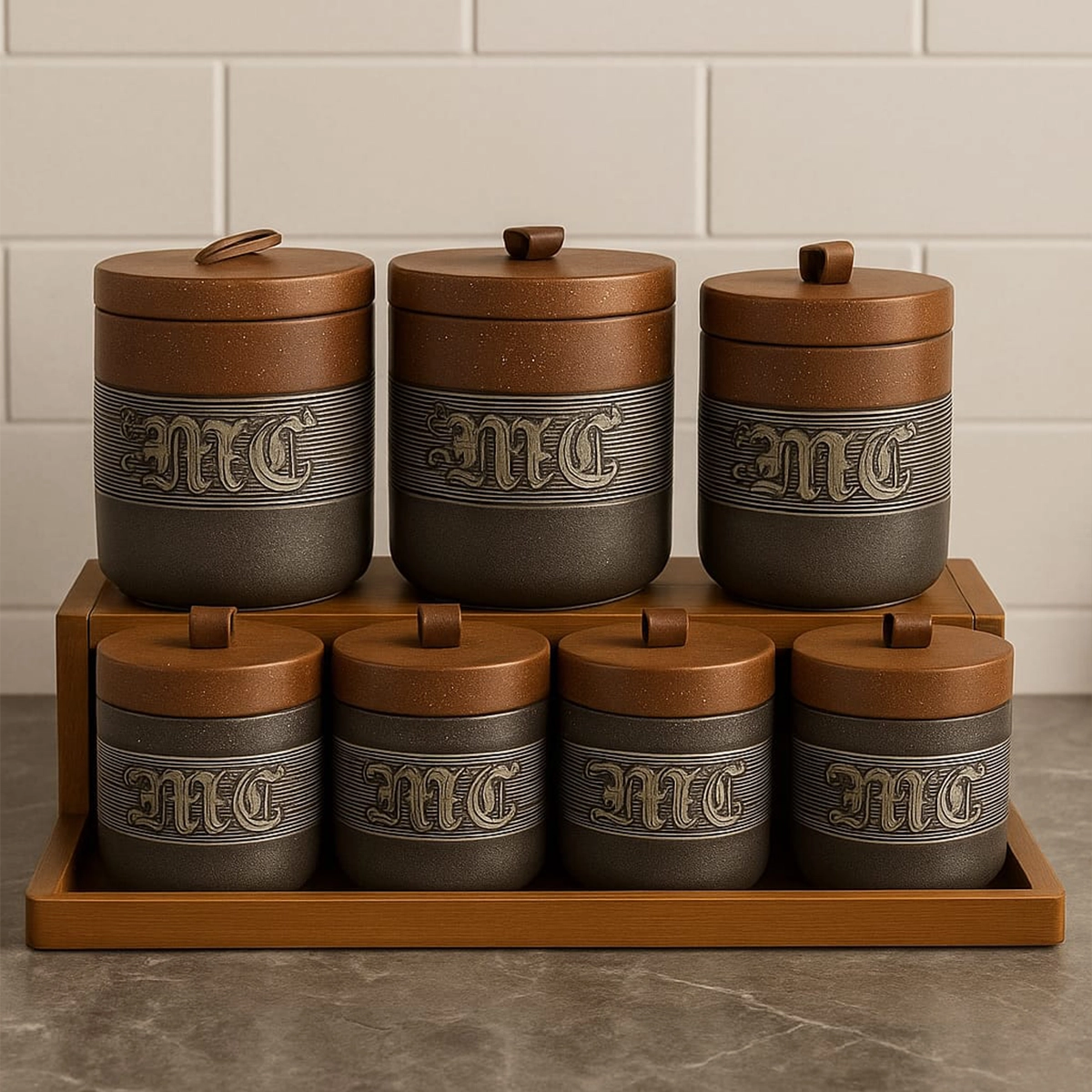 סט מטבח 1/8 שחור בשילוב עץ צבע חום כהה 8*1010*15 ס"מ