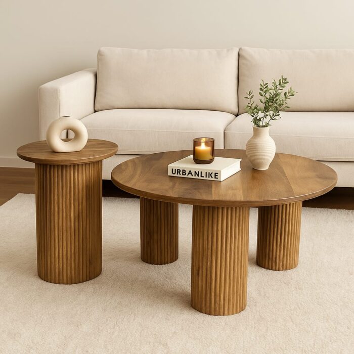 סט שולחנות לסלון מעץ מנגו מלא צבע טבעי 45*80*80+ 52*40*40