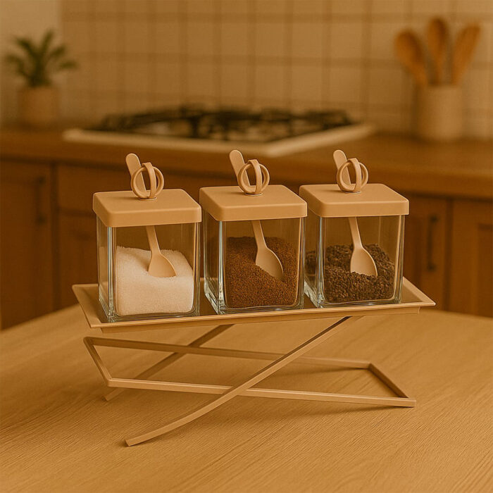 כמות של שלוש צנצנות על מגש ביז'32.5*12.8*12.5 ס"מ