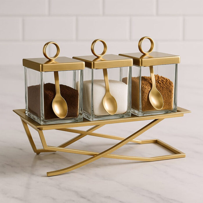 כמות של שלוש צנצנות על מגש זהב 32.5*12.8*12.5 ס"מ