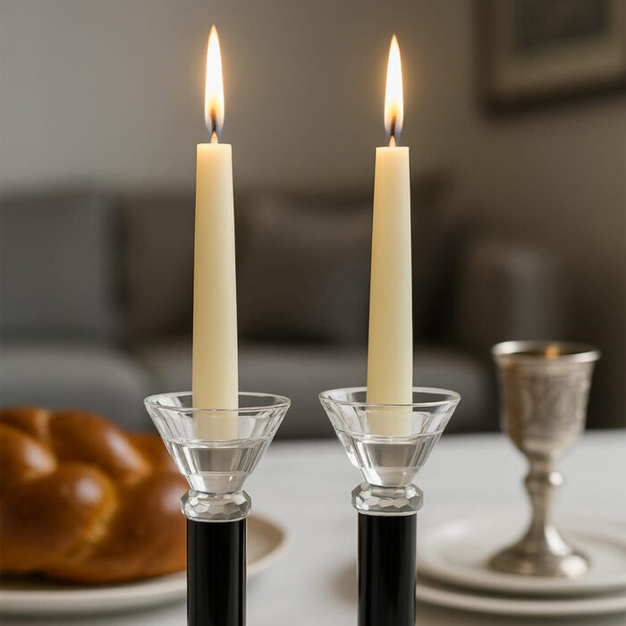 זוג פמוטים זכוכית עגולים בשילוב שחור 16 ס"מ